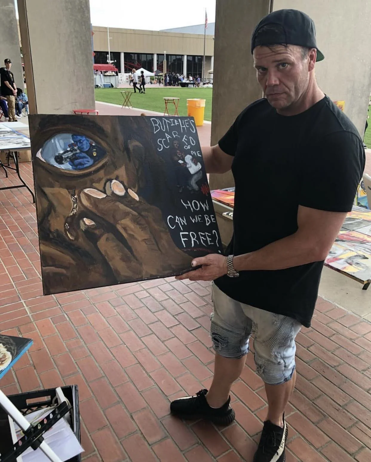 “My first introduction to Mr. Haywood’s art was in his classroom—a museum of culture, political commentary, and his artistic evolution over the years. During our time working together, I have seen Mr. Haywood work tirelessly to perfect his craft, experimenting with new techniques he gained from the countless hours before and after school spent participating in his master’s classes, watching and taking notes from YouTube videos, and implementing the advice of his mentors. I firmly believe he is primed and ready for the next level.